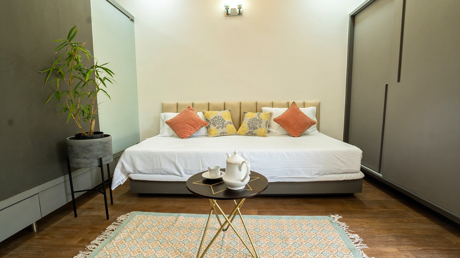 Renovated by Atelier 226, this 3500 sq.ft 3BHK farmhouse in Adgaon transforms rustic simplicity into refined serenity. Thoughtfully planned living spaces, natural textures, and an earthy palette come together to honour its rural charm while elevating comfort and usability. This villa is a quiet dialogue between landscape and lifestyle—where timelessness grows wild.