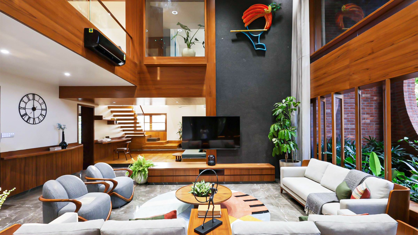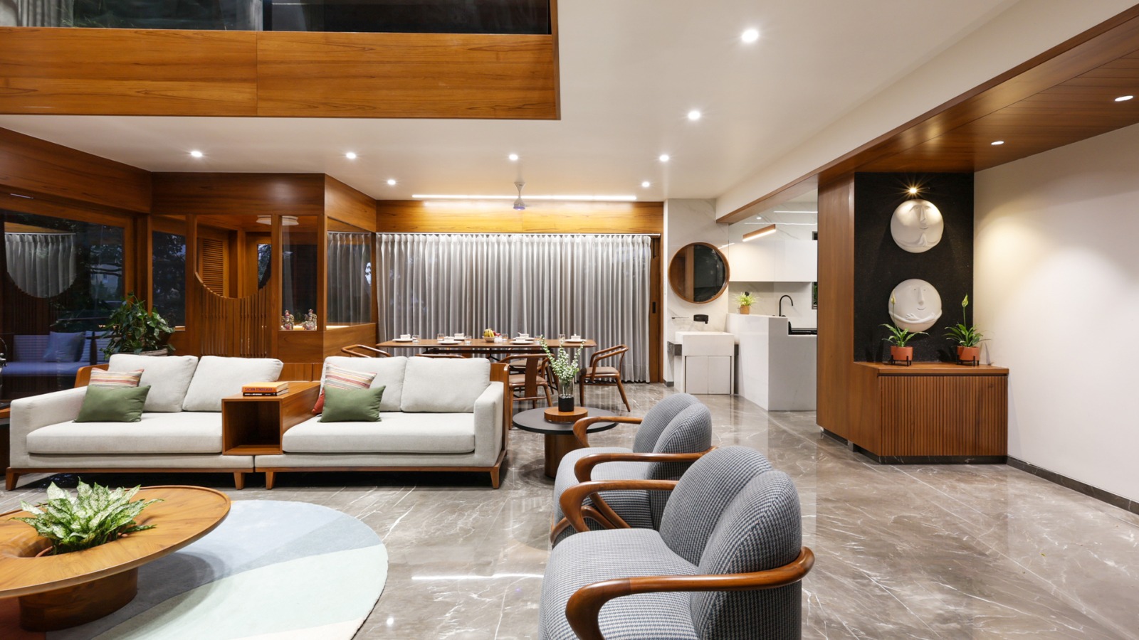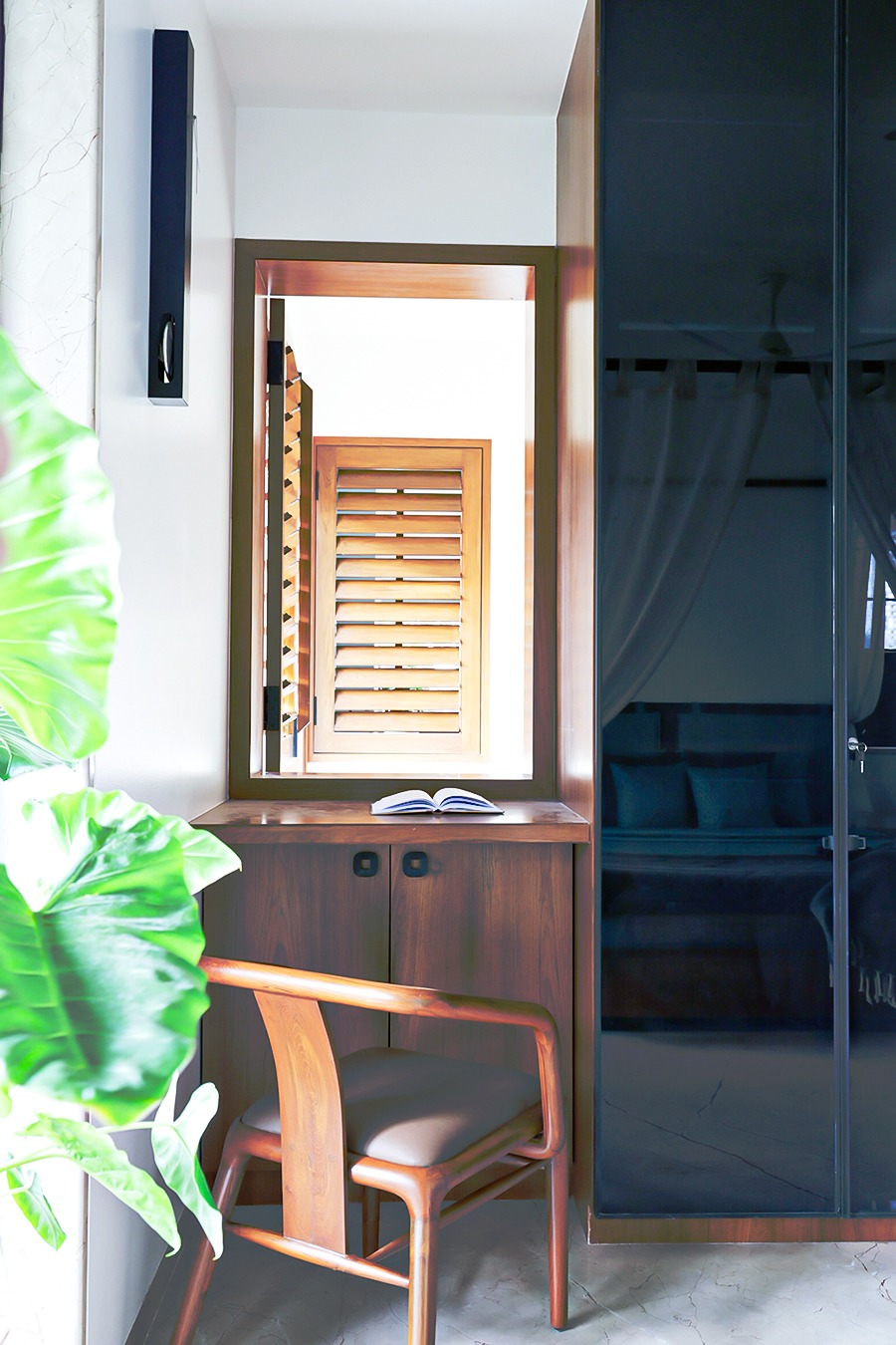 Designed by Atelier 226, The Nest is a residence that gracefully bridges eras, infusing modern functionality with the warmth of traditional Indian design. Louvered windows, dyed veneers, wooden textures, and carefully curated art pieces bring character and depth to every room. The layout is thoughtfully planned to create seamless transitions between open, airy spaces and cozy private zones. From materiality to mood, every element reflects a deep respect for heritage while embracing the ease of contemporary living. The Nest is not just a home, it’s a soulful escape that embodies serenity, cultural richness, and understated elegance