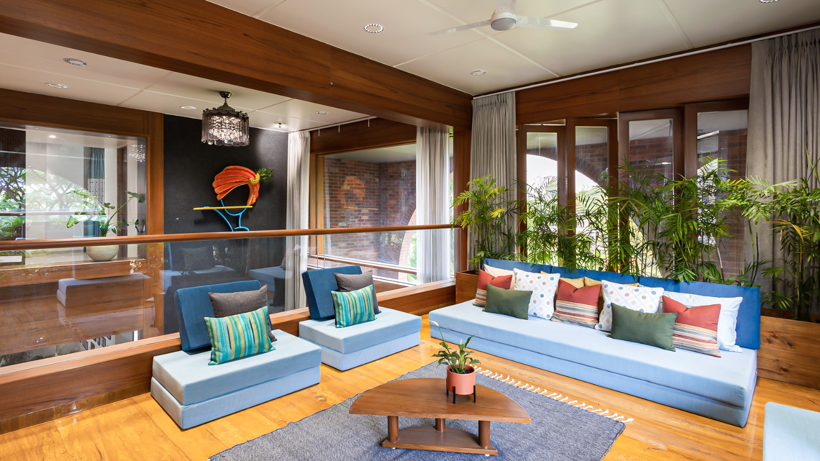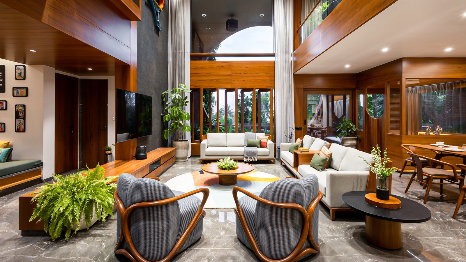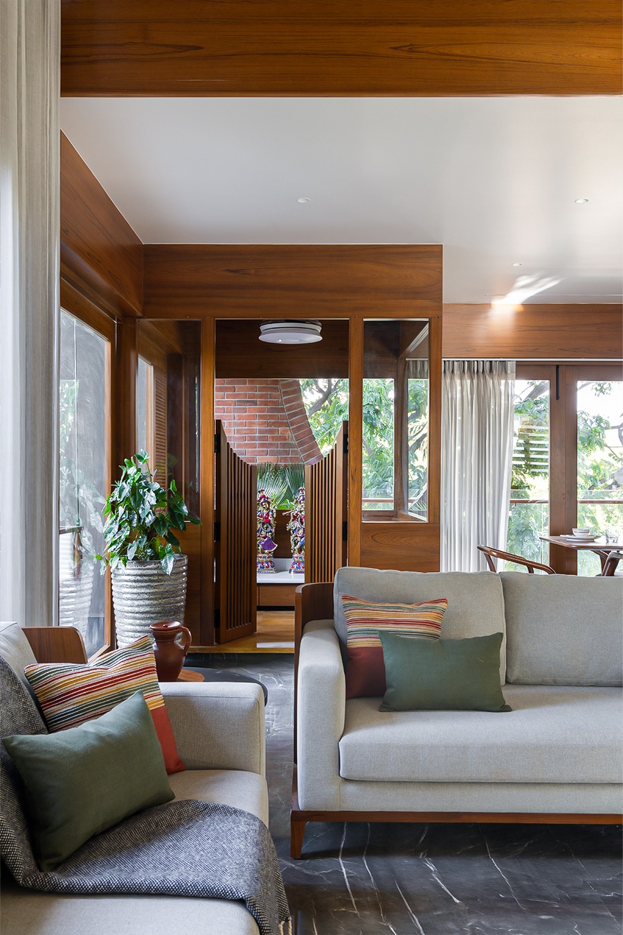 Designed by Atelier 226, The Nest is a residence that gracefully bridges eras, infusing modern functionality with the warmth of traditional Indian design. Louvered windows, dyed veneers, wooden textures, and carefully curated art pieces bring character and depth to every room. The layout is thoughtfully planned to create seamless transitions between open, airy spaces and cozy private zones. From materiality to mood, every element reflects a deep respect for heritage while embracing the ease of contemporary living. The Nest is not just a home, it’s a soulful escape that embodies serenity, cultural richness, and understated elegance