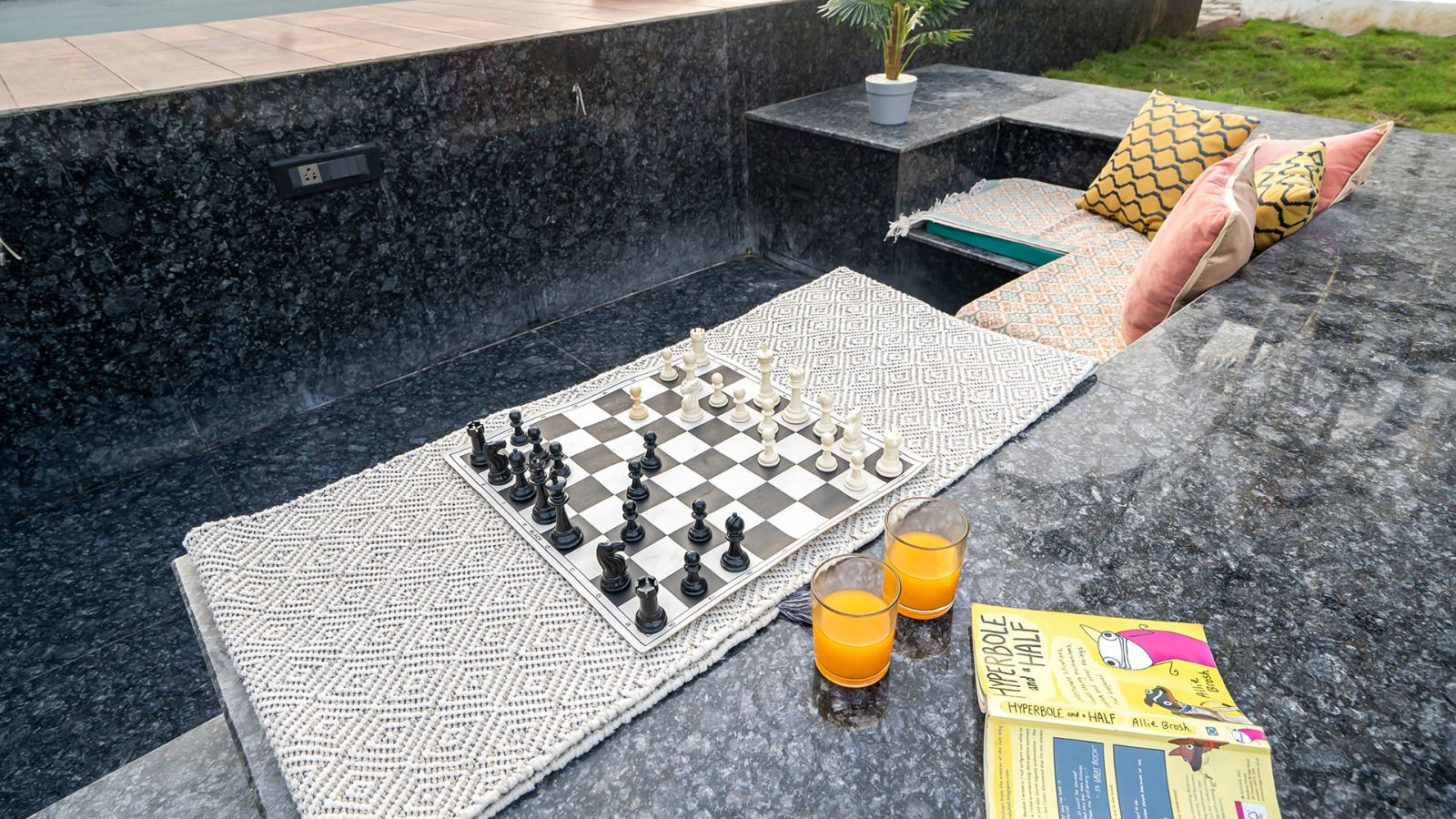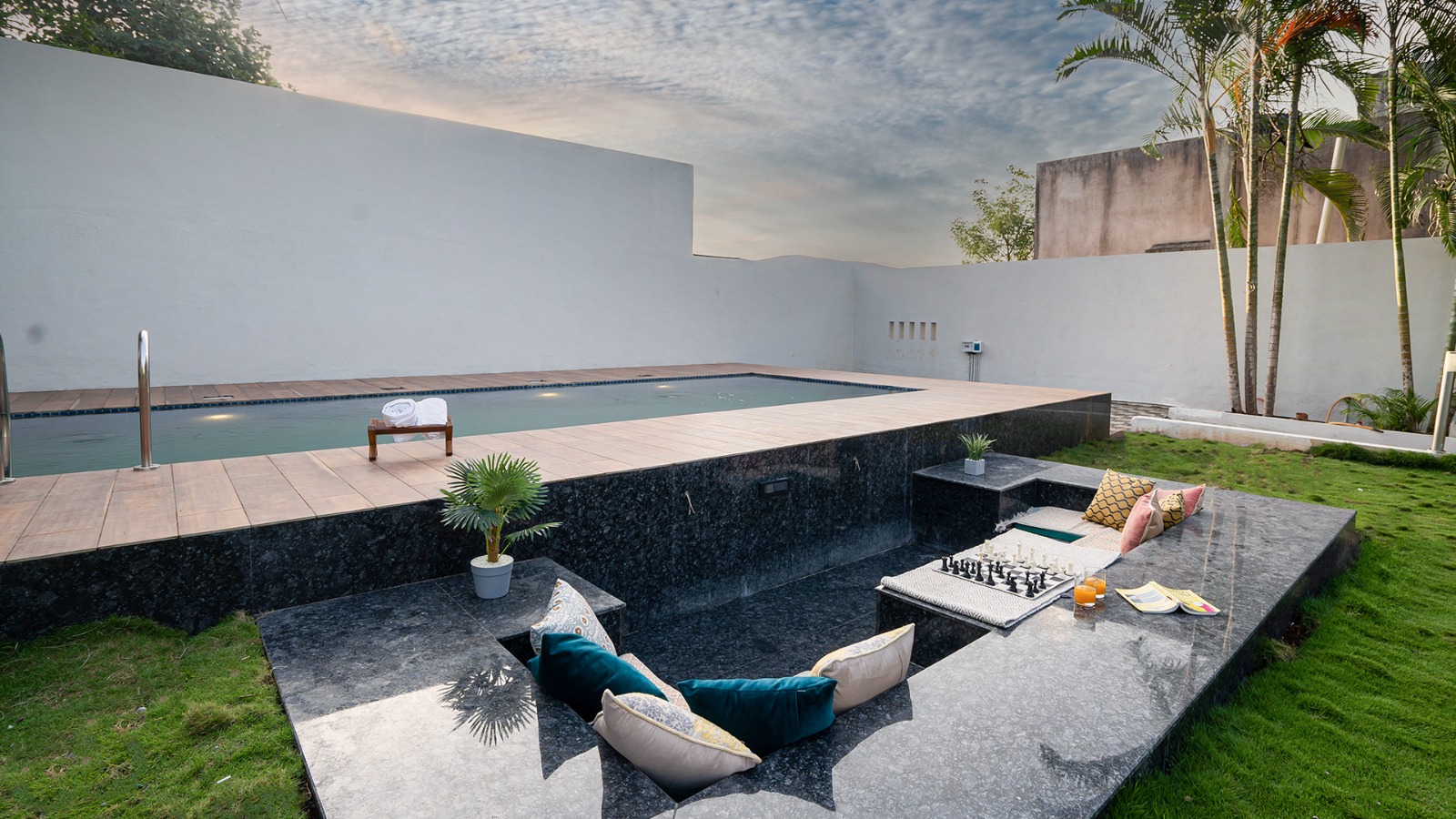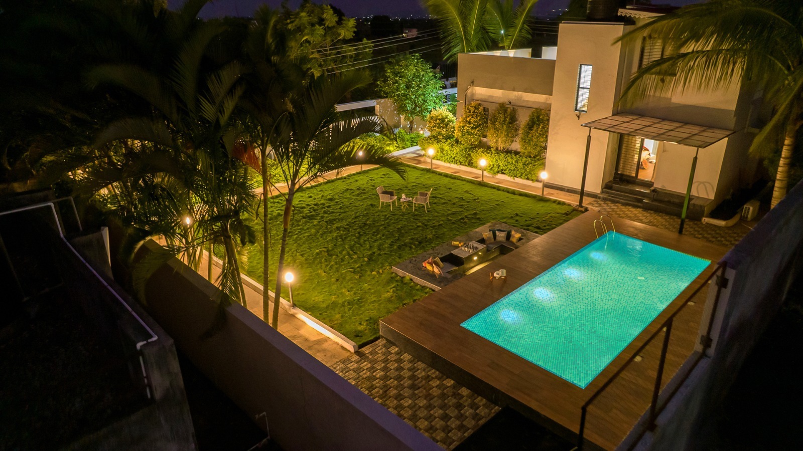 Renovated by Atelier 226, this 3500 sq.ft 3BHK farmhouse in Adgaon transforms rustic simplicity into refined serenity. Thoughtfully planned living spaces, natural textures, and an earthy palette come together to honour its rural charm while elevating comfort and usability. This villa is a quiet dialogue between landscape and lifestyle—where timelessness grows wild.