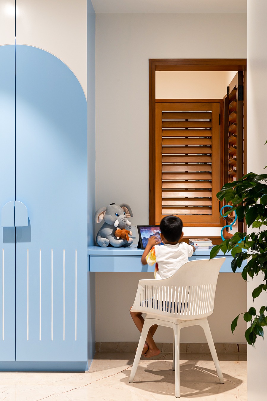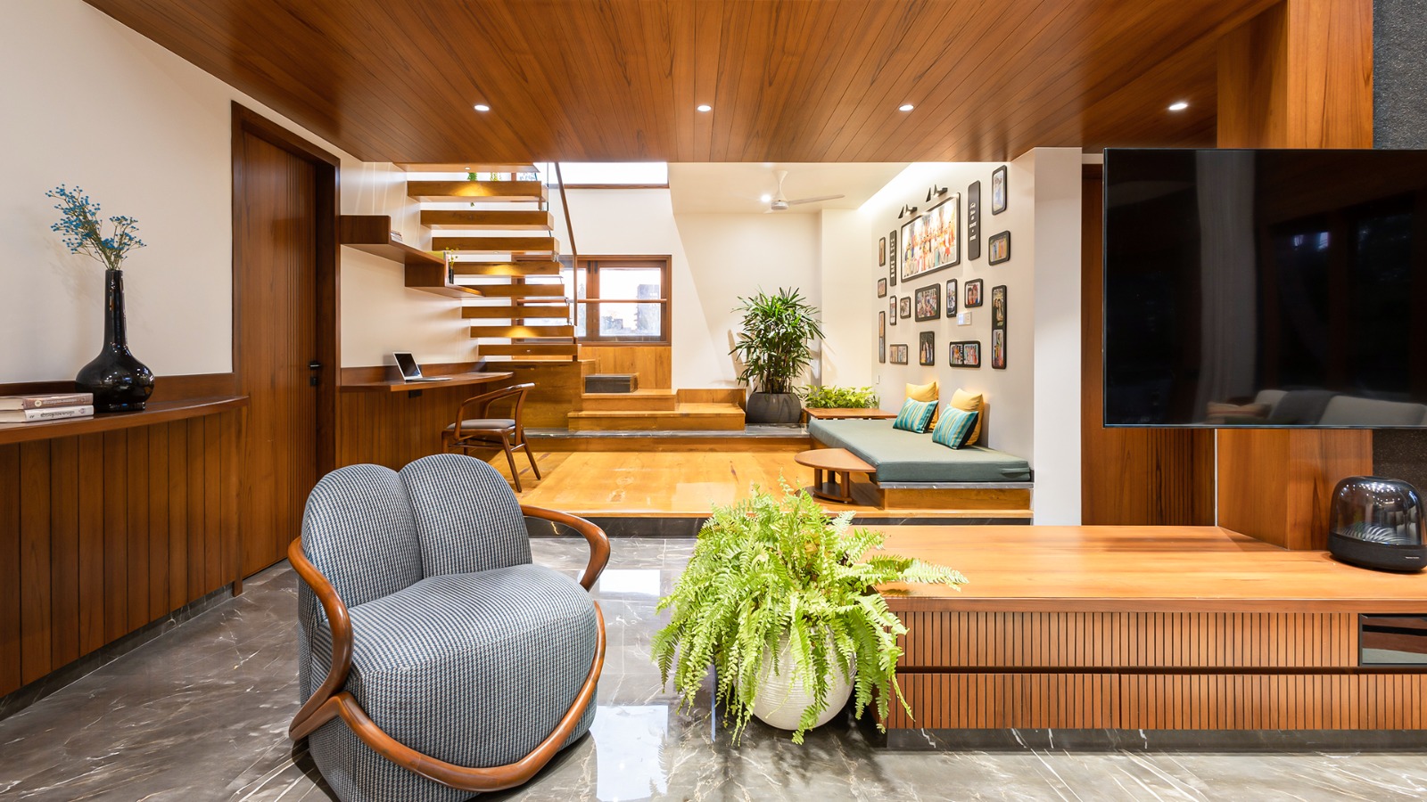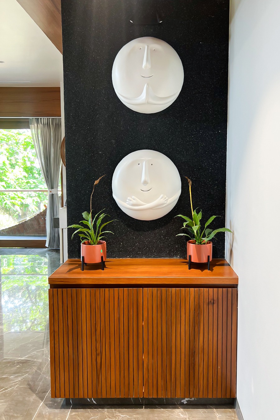 Designed by Atelier 226, The Nest is a residence that gracefully bridges eras, infusing modern functionality with the warmth of traditional Indian design. Louvered windows, dyed veneers, wooden textures, and carefully curated art pieces bring character and depth to every room. The layout is thoughtfully planned to create seamless transitions between open, airy spaces and cozy private zones. From materiality to mood, every element reflects a deep respect for heritage while embracing the ease of contemporary living. The Nest is not just a home, it’s a soulful escape that embodies serenity, cultural richness, and understated elegance