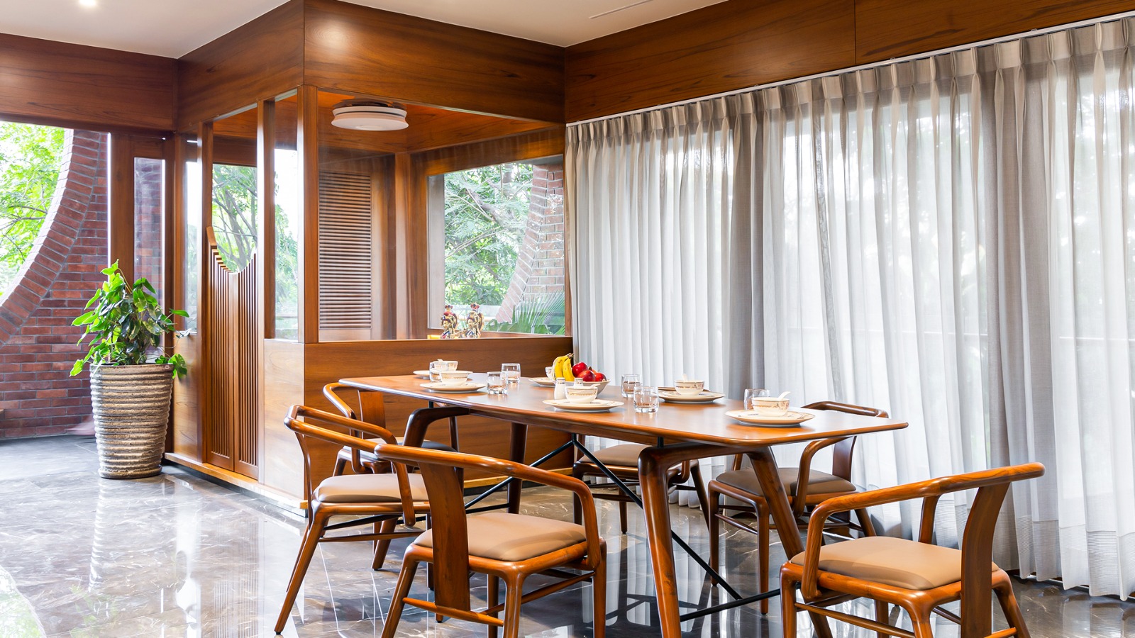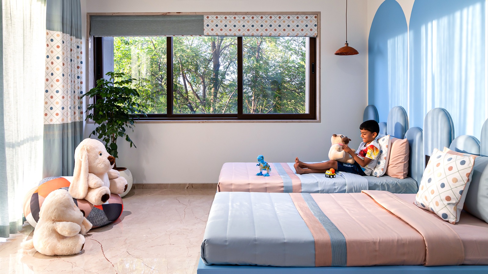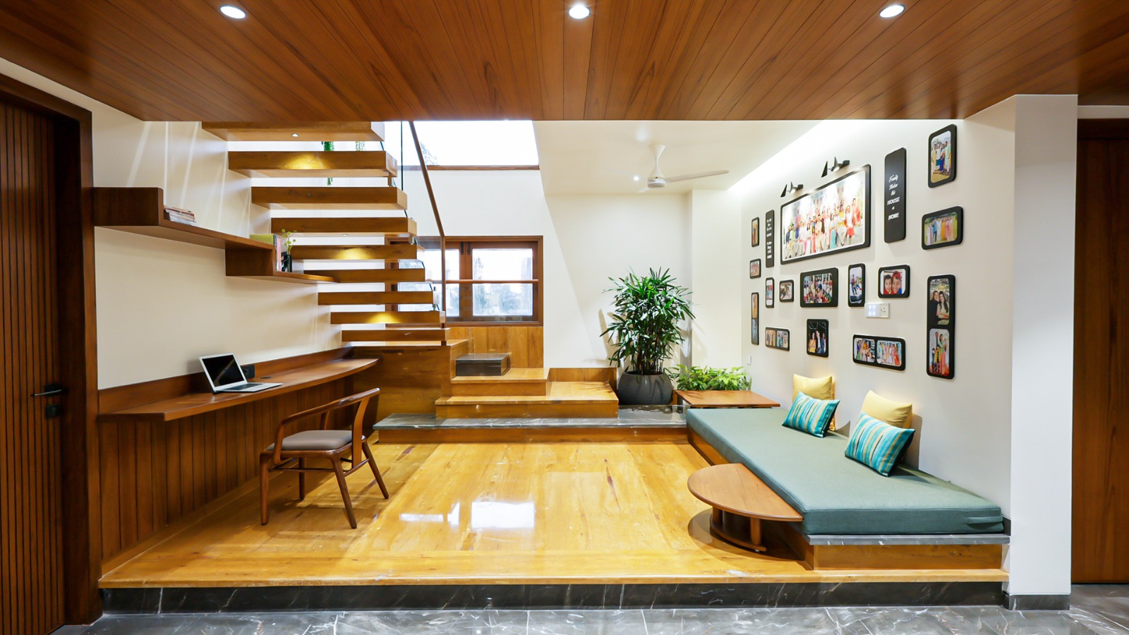 Designed by Atelier 226, The Nest is a residence that gracefully bridges eras, infusing modern functionality with the warmth of traditional Indian design. Louvered windows, dyed veneers, wooden textures, and carefully curated art pieces bring character and depth to every room. The layout is thoughtfully planned to create seamless transitions between open, airy spaces and cozy private zones. From materiality to mood, every element reflects a deep respect for heritage while embracing the ease of contemporary living. The Nest is not just a home, it’s a soulful escape that embodies serenity, cultural richness, and understated elegance